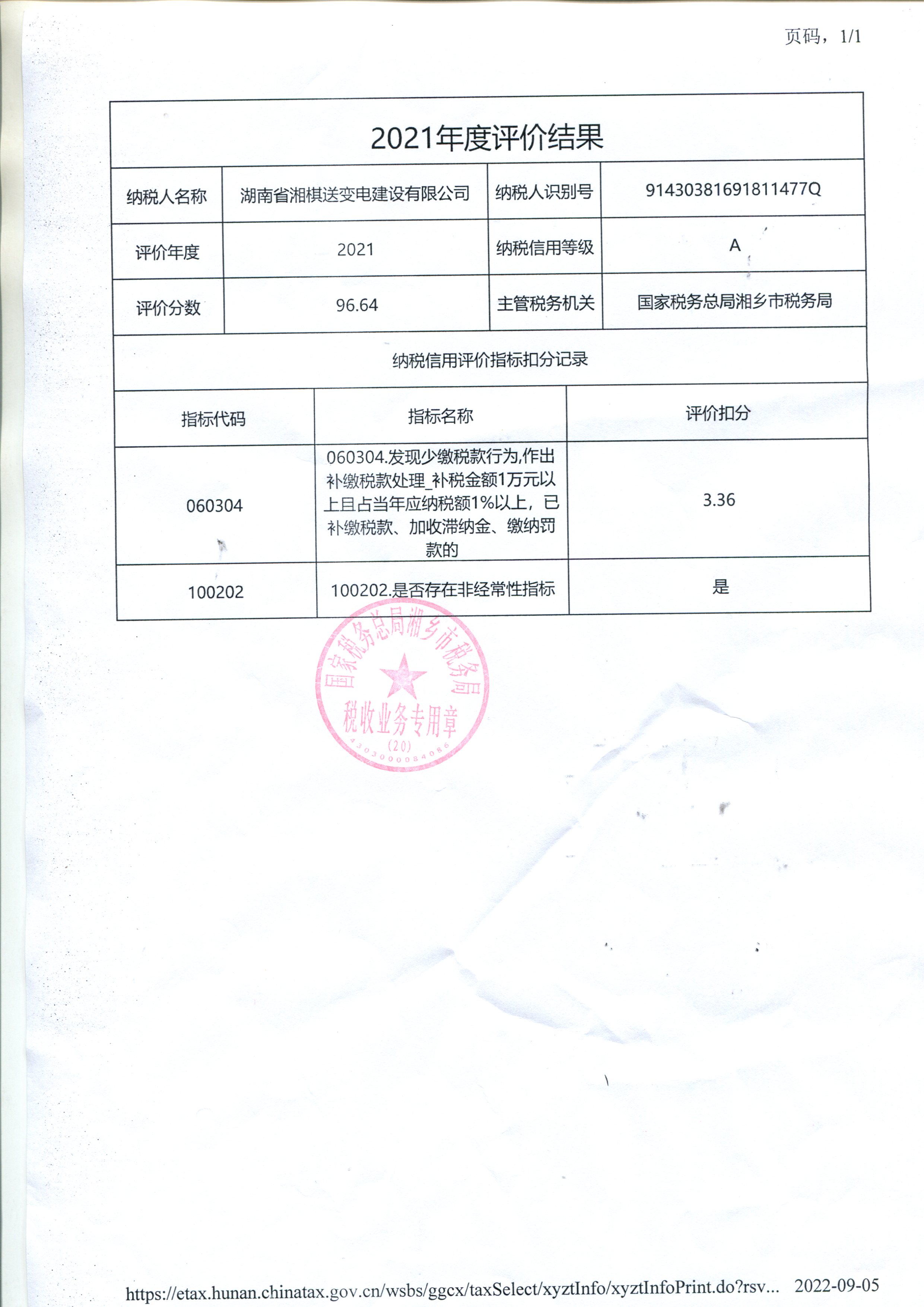 企業(yè)納稅信用等級報告: