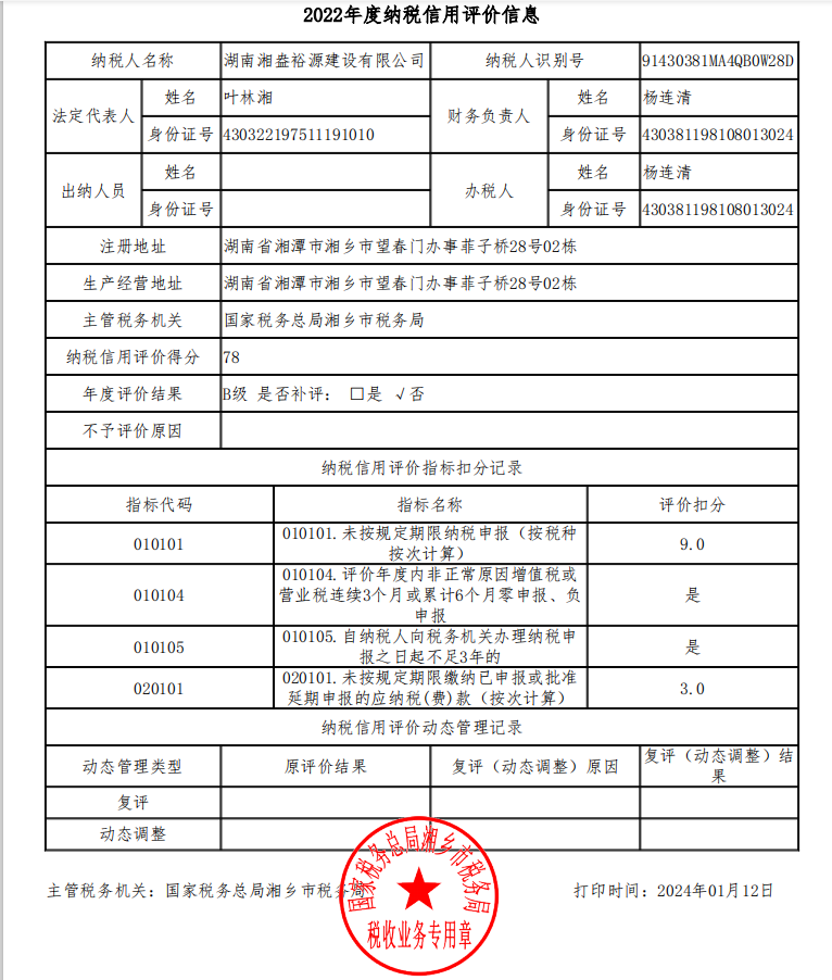 企業(yè)納稅信用等級(jí)報(bào)告: