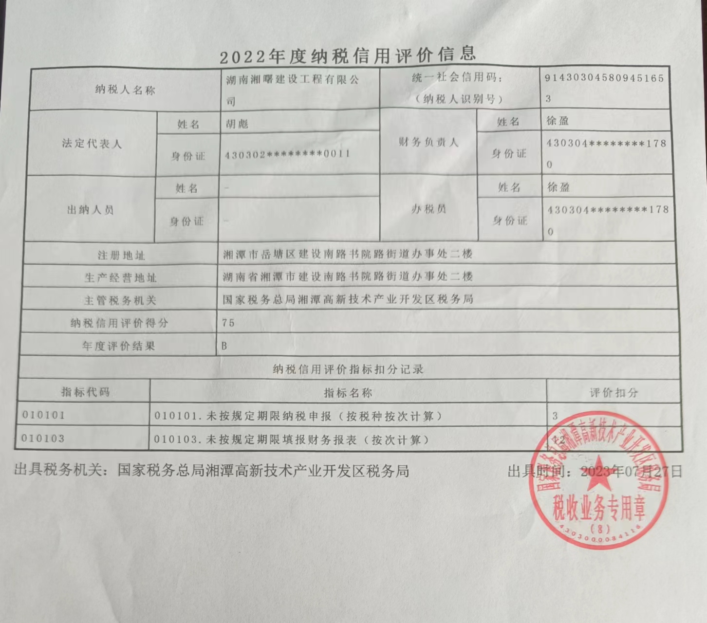 企業(yè)納稅信用等級報告: