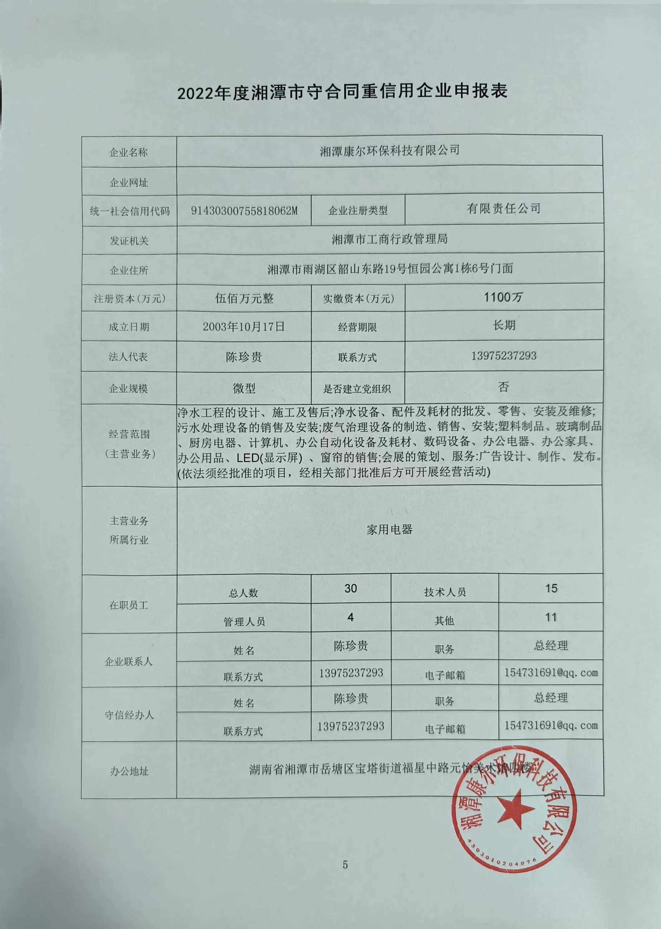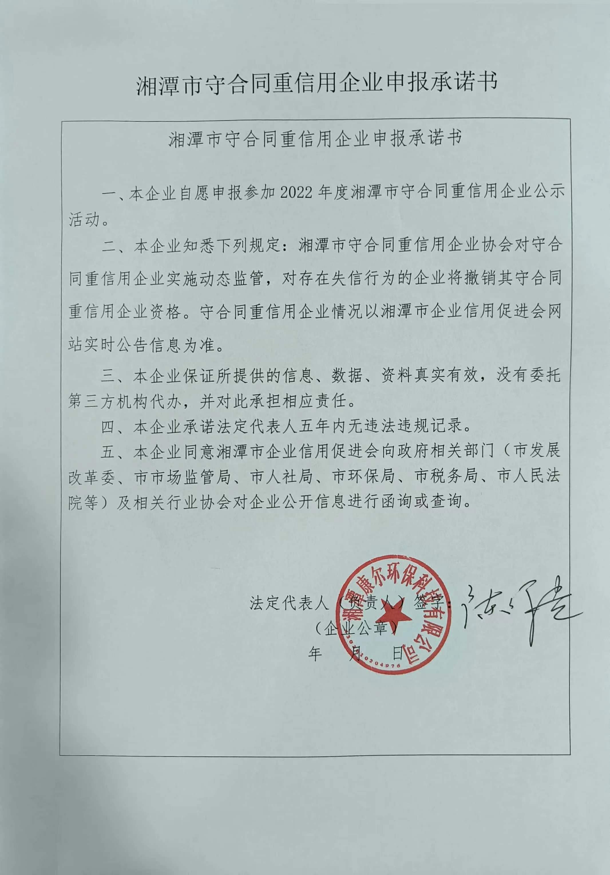 本企業(yè)根據(jù)《湘潭市守合同重信用企業(yè)申報規(guī)定》等編制 2022 年度企業(yè)信用報告書,并保證本報告書內(nèi)容真實、準確、完整。