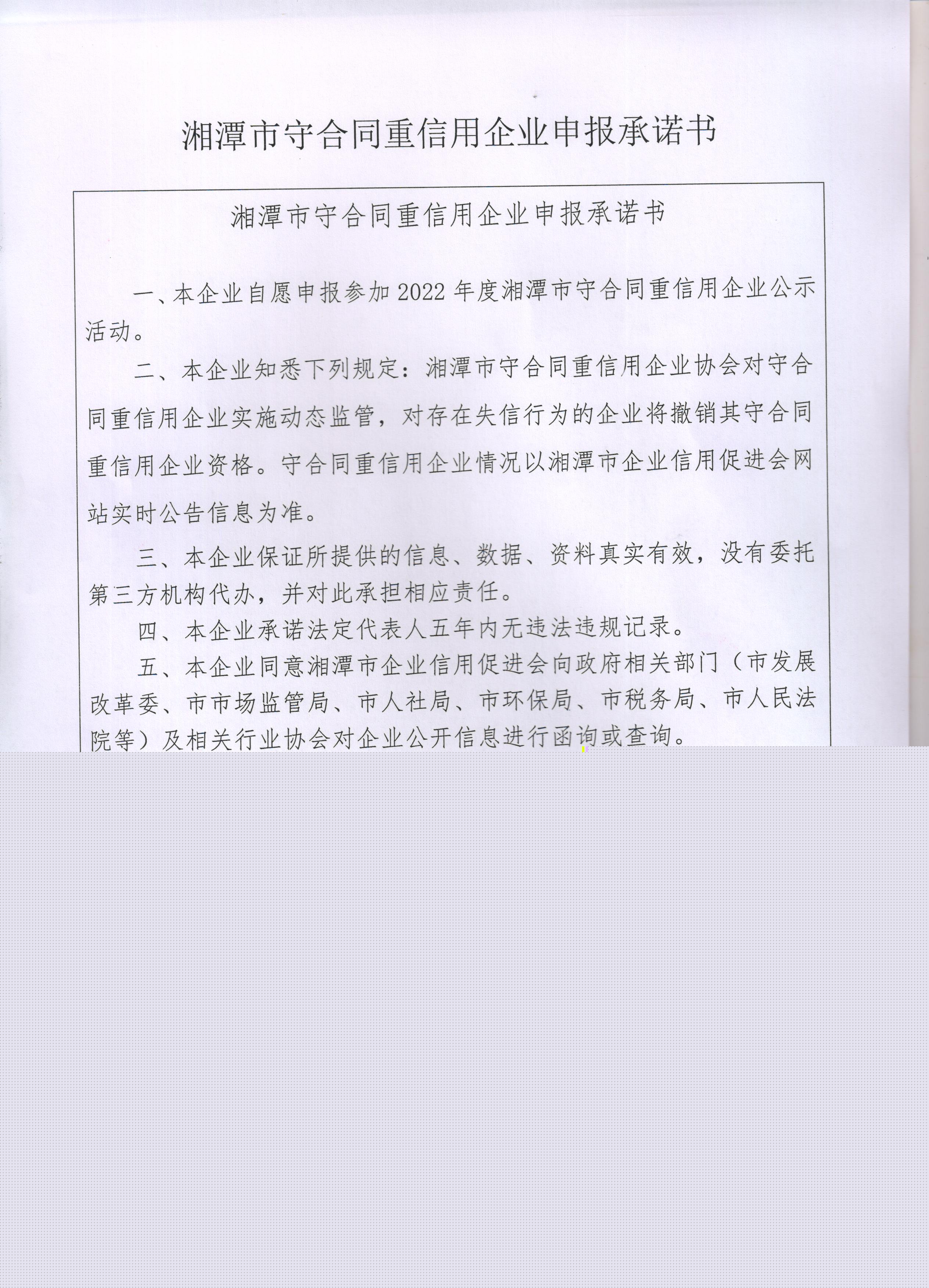 本企業(yè)根據(jù)《湘潭市守合同重信用企業(yè)申報(bào)規(guī)定》等編制 2022 年度企業(yè)信用報(bào)告書(shū),并保證本報(bào)告書(shū)內(nèi)容真實(shí)、準(zhǔn)確、完整。