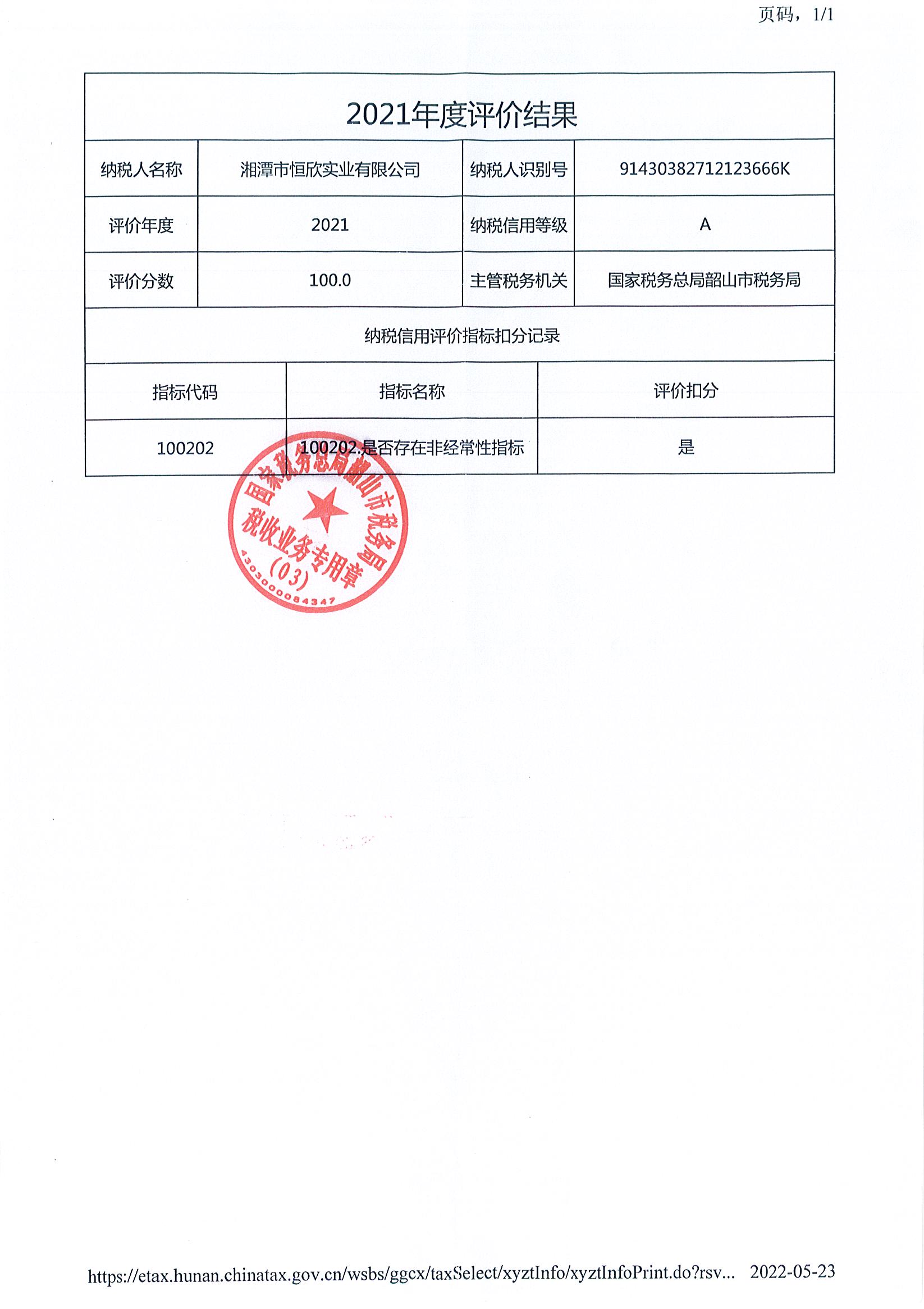 企業(yè)納稅信用等級報告: