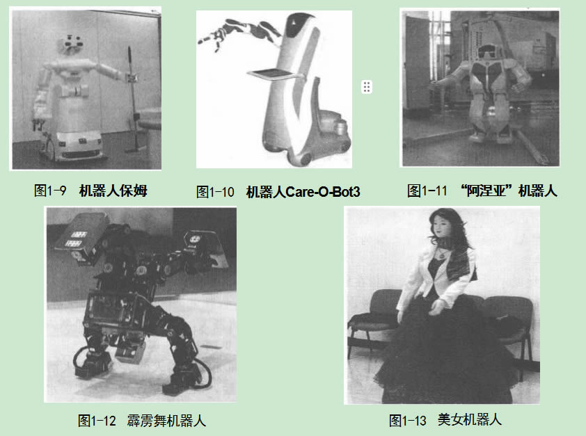 圖1-11所示機器人是俄羅斯利用“新紀元”公司許多d特研究研制的人形機器人“阿 涅亞”,這款機器人是一種能夠雙腳行走,還能與人對話的服務機器人,它擁有世界先進的 機械結構和程序保障系統(tǒng)。